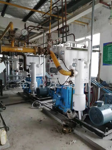 氣體經(jīng)系統(tǒng)閥門(mén)由進(jìn)氣管路進(jìn)入壓縮機(jī)內(nèi),經(jīng)壓縮機(jī)壓縮后,由排氣連通管排入氣液分離器中,經(jīng)氣液分離器排出。